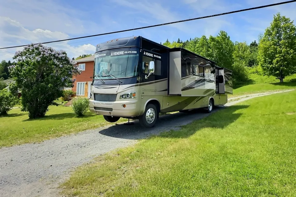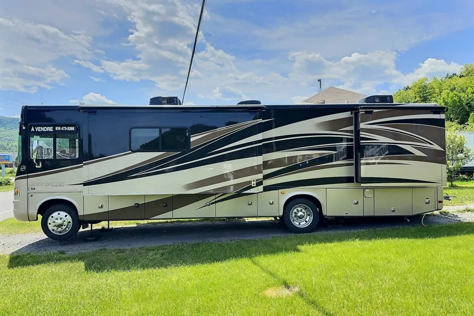 Moins de 50000 km * Entretien A1 * 6 pneus 2023 * 2 silencieux 2024 * foyer électrique et d'ambiance * 2 air climatisé * Génératrice ONAN 5500w Auvents 21pi * Suspension sur ballon * Miroir grand format * Électro nivellement * Divan-lit avec matelas gonflable électrique * 2 thermopompes * hot pad au plancher * Plein d'autres avantages...un VR de confiance !