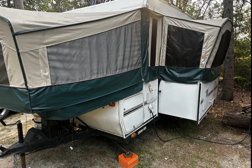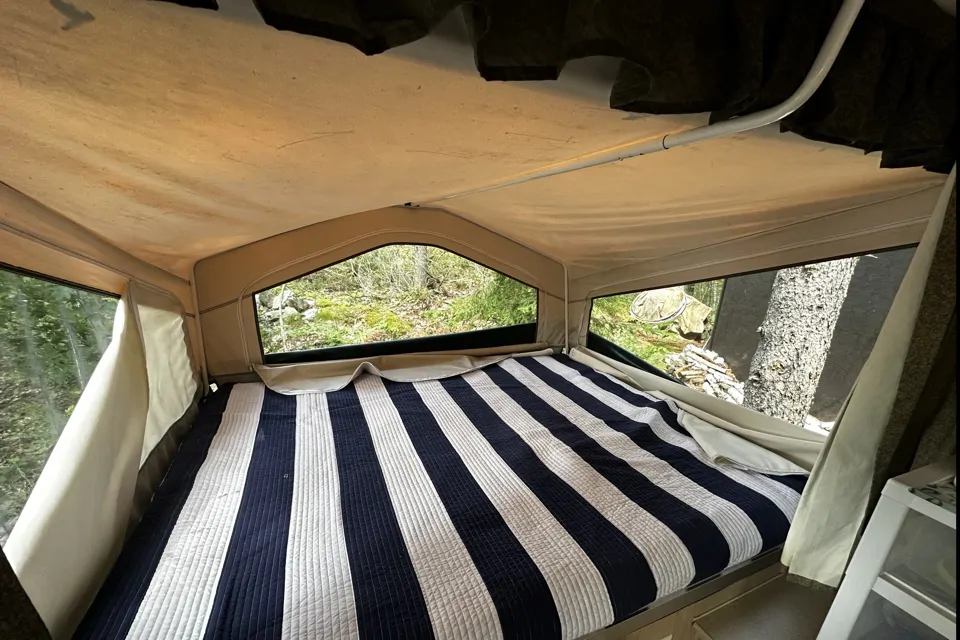 Meet the perfect weekend getaway trailer. Relatively light and plenty of space for the whole family. This tent trailer has 1 king, 1 queen, and the table converts to a double bed, providing tons of sleeping space. The luxury of a trailer with the brightness and airiness of a tent - the best of both worlds.