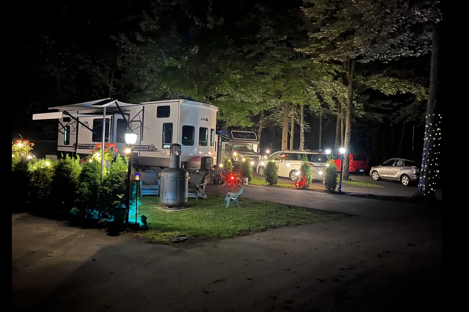 Vivez l'expérience de camping dans une fifthwheel haute gamme installé sur un terrain V.I.P au camping Aztec à Granby. Cela comprend accès pour 4 personnes à toutes les activités et piscine à vague. La fifthwheel très spacieuse avec cinéma maison dans le salon et chambre, laveuse et sécheuse, grand réfrigérateur et machine à glace, thermopompe double pour plus de tranquillité. Plancher en bois franc, lit king ajustable, foyer de bois style fumoir à l'extérieur. L'installation comprend le service internet, apple TV et Netflix. Situé tout prêt de la piste cyclable.