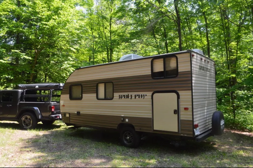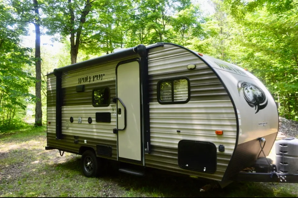 Roulotte idéale pour petite famille ou couple seul. Minimum d’entretien pour un maximum de confort pour votre séjour. Commodités de base tel que frigo/douche bain/ toilette/ télé/ poêle et évier. La chambre se ferme par un rideau pour plus d’intimité. Camper? Pourquoi pas!