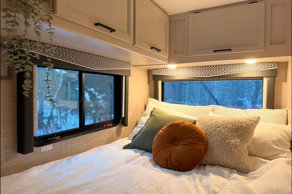 Bienvenue dans Le Refuge – Boho Chic, un VR Classe C 2022 impeccablement entretenu, très peu roulé (10 000 km seulement) et aménagé dans une ambiance chaleureuse et épurée.
