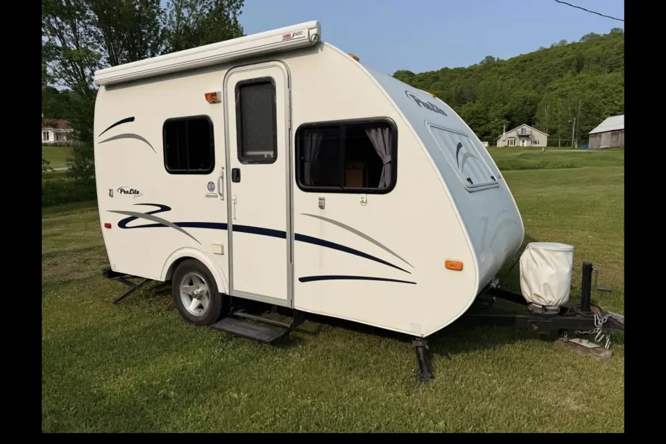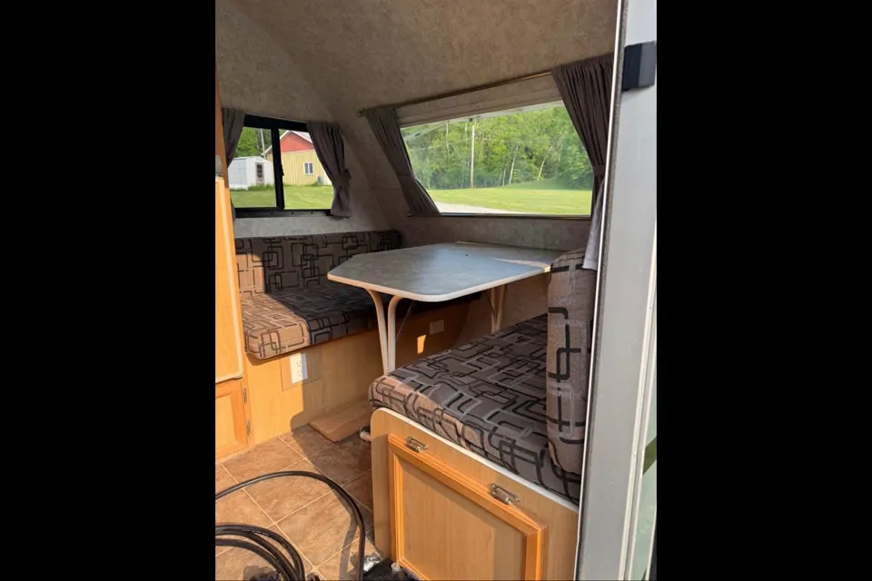 Prolite Profil 2012, 15 pieds , poids 1500 lbs , lit double ( table) 2 lits superposés,air climatisé, chauffage ,toilette et douche séparées , batterie marine , frigo ( électrique, propane ou batterie ), auvent, accessoires de cuisine ,propane inclus , attache remorque pour support à vélo. Très facile à remorquer !