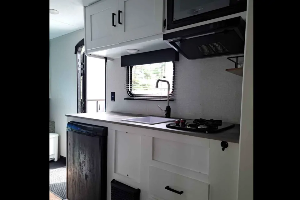 Frigo, douche, toilette, ronds de poêle au propane, vaiselle, toaster, cafetière. Tout le nécessaire pour passer des vacances idéales en famille ou en amis. Je peux fournir un petit BBQ, des chaises de camping, la literie, les équipements et le propane. Passez des vacances confortables dans une roulotte parfaitement adaptée!