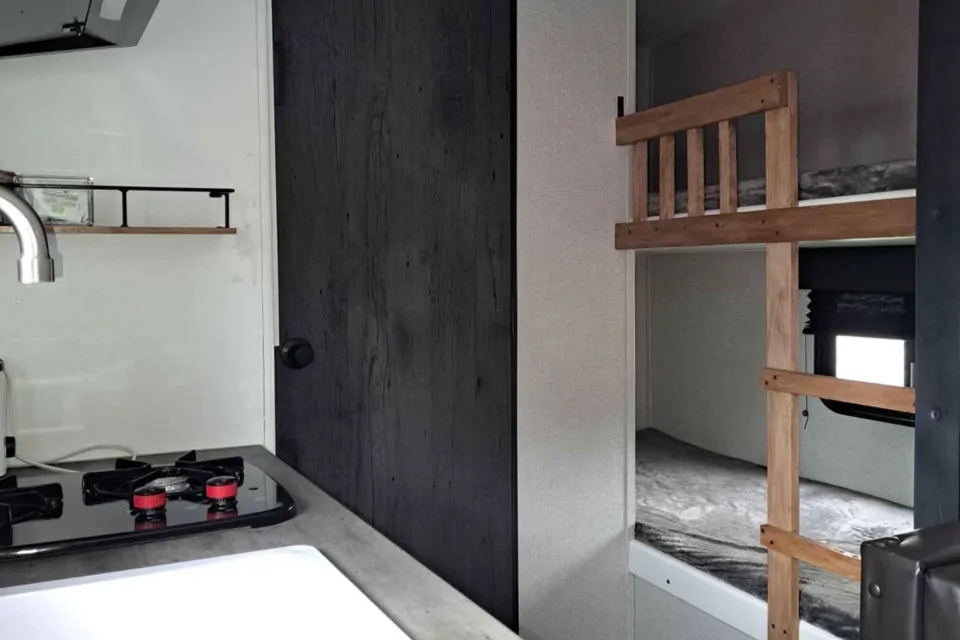 Couche 5 personnes, deux bunk pour les enfants. Lit « queen » pour les parents avec mousse mémoire.