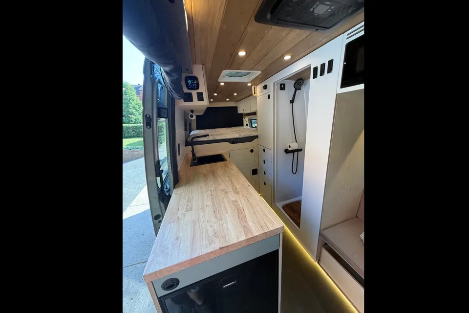Super sprinter 2024 fraîchement converti pour partir à l’aventure. Ce campervan est doté d’un système électrique et plomberie vous permettant d’être 100% autonome sur la route comme au camping. Vous n’aurez ni chaud ni froid grâce au système de chauffage diesel ainsi que notre climatiseur 12V fonctionnant sur les batteries .