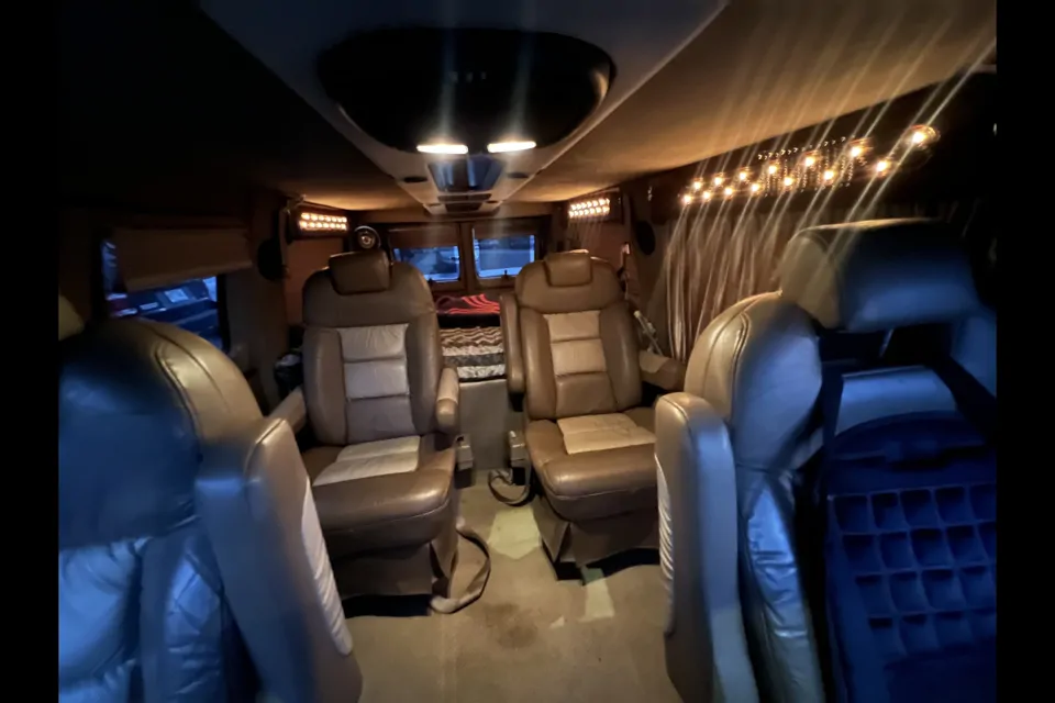● Comfort & Cabin: Custom interior, captain's chairs, A/C (Cold), ambient lighting, storage cubbies.