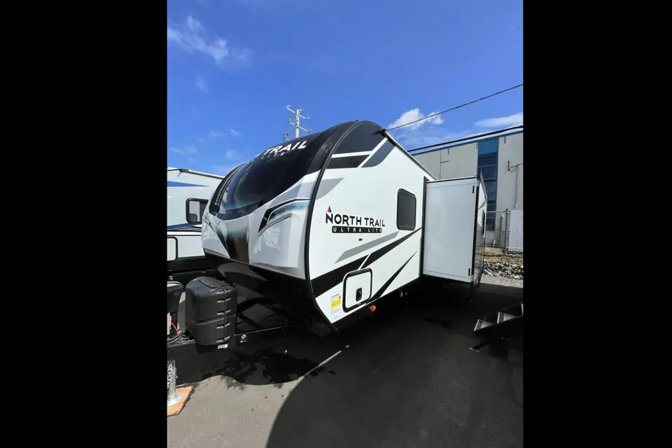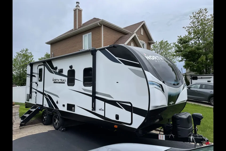 La Heartland North Trail 22CRB est une caravane légère (environ 2 177 à 2 311 kg à vide), tractable par un pick-up d'une demi-tonne, mesurant généralement entre 8,2 et 8,5 mètres de long et conçue pour les couples. Elle comprend une chambre principale avec un lit king-size à l'avant, une grande salle de bain à l'arrière et une extension principale avec un canapé-lit. Ses principaux atouts sont un auvent électrique, un espace de rangement traversant, une construction en Azdel et un soubassement chauffé et isolé pour camper par tous les temps.