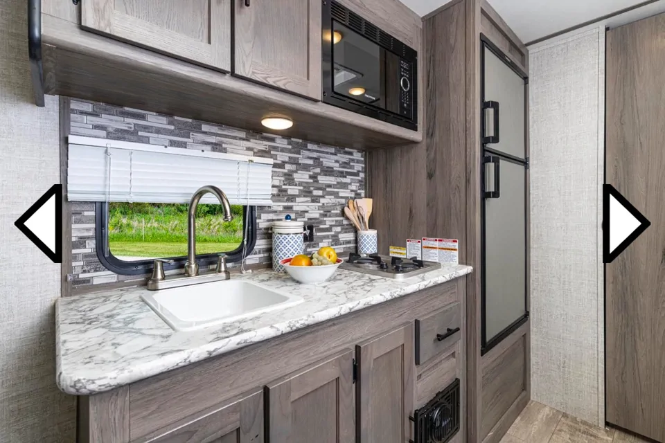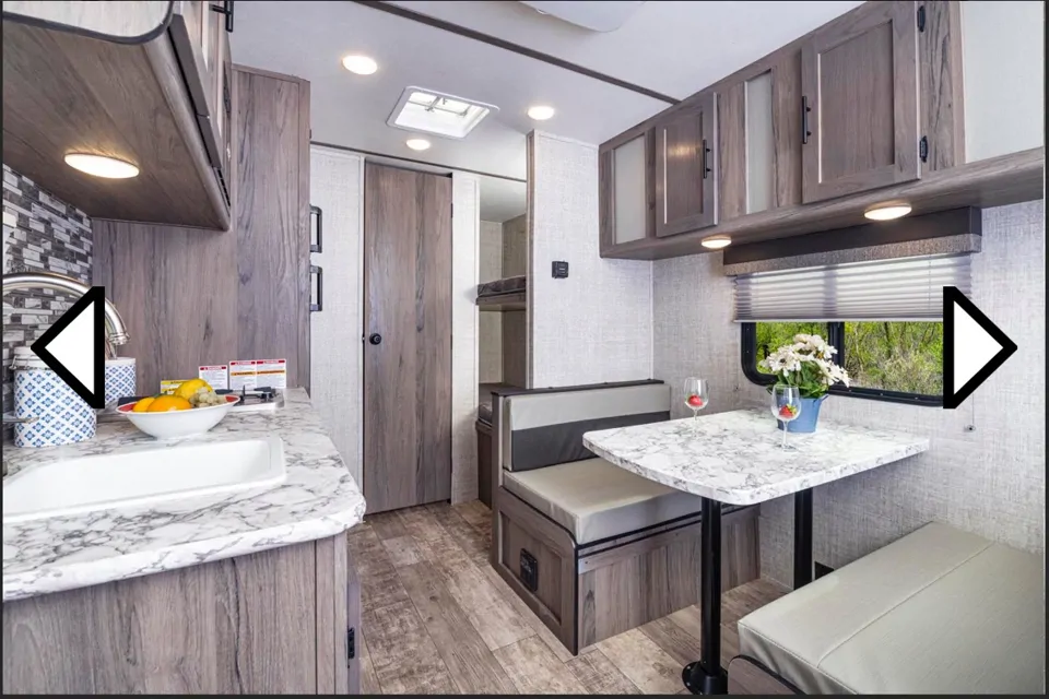 Belle petite roulotte bien équipée pour passer d’agréables moments en couple ou en famille.