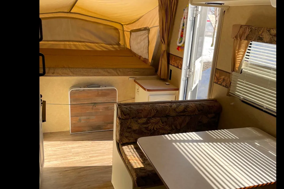 Roulotte hybrid de 18 pieds, deux lit queen et une table qui se transforme en lit