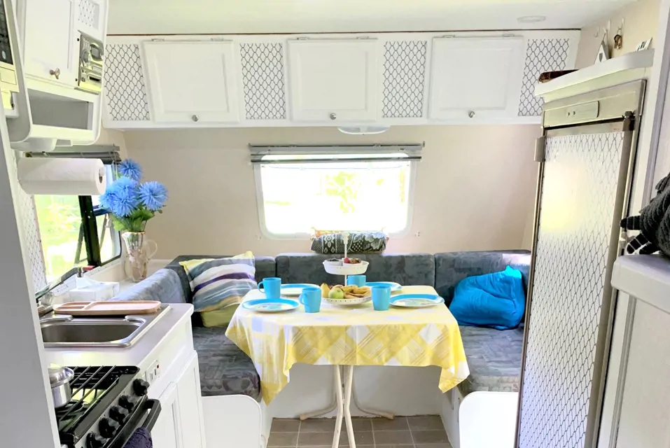We have a new A/C, a full equipped kitchen, bunk beds, an amazing huge awning and so much more!