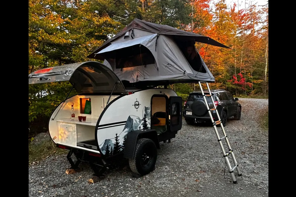 Superbe petite roulotte teardrop. Idéale pour un couple et ses jeunes enfants. Nos enfants de 13 et 10 ans ont adoré la tente au point où nous avons aussi décidés (les adultes) de l'essayer certains soir lol. Nous avons adoré l'expérience. Jesse est très sympatique et explique bien les principe de gestion de la roulotte qui sont relativement simples. 15 min de setup environ. Ce fut très agréable et confortable.