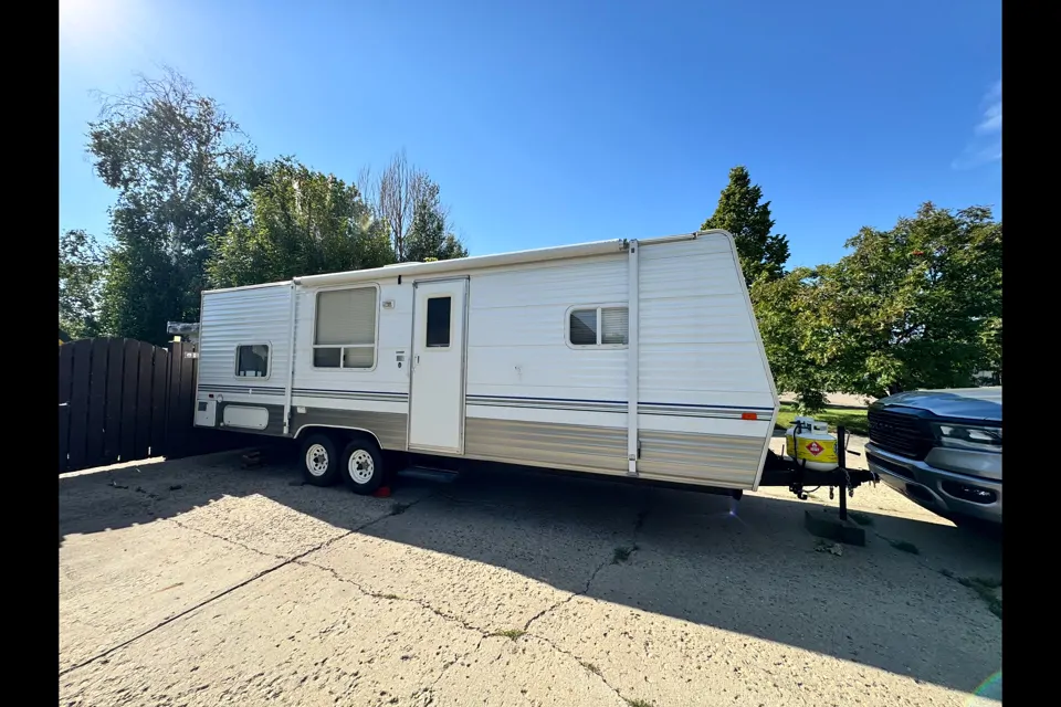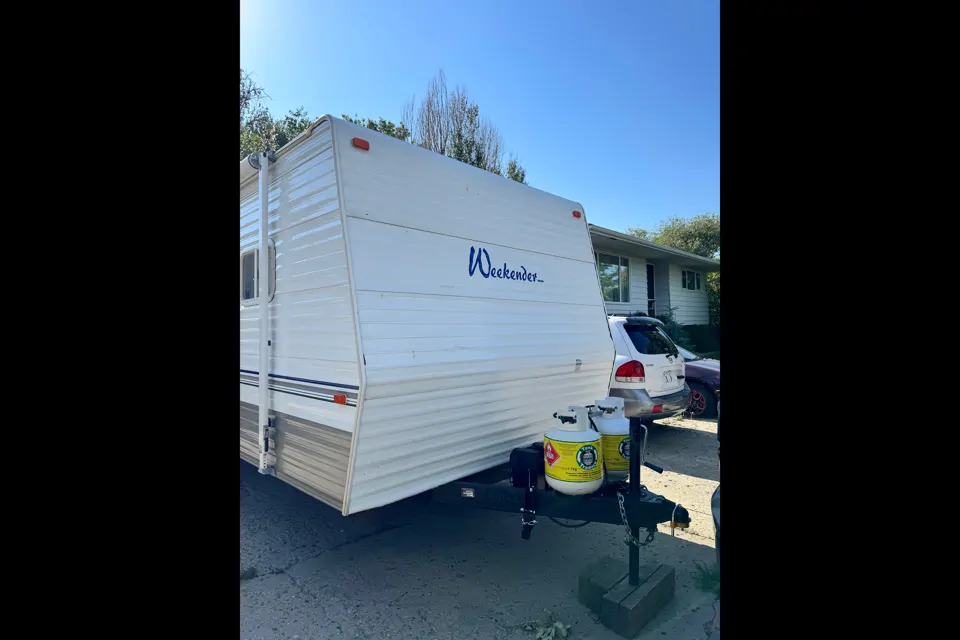 Great for a small family! Has a queen bed in the front of trailer with a curtain, a pullout couch, a dinette that folds into a bed, at the back it has a double bed and a single up top for storage or a bed! Fridge/freezer work great! Heat works great!