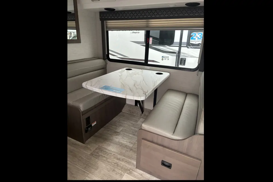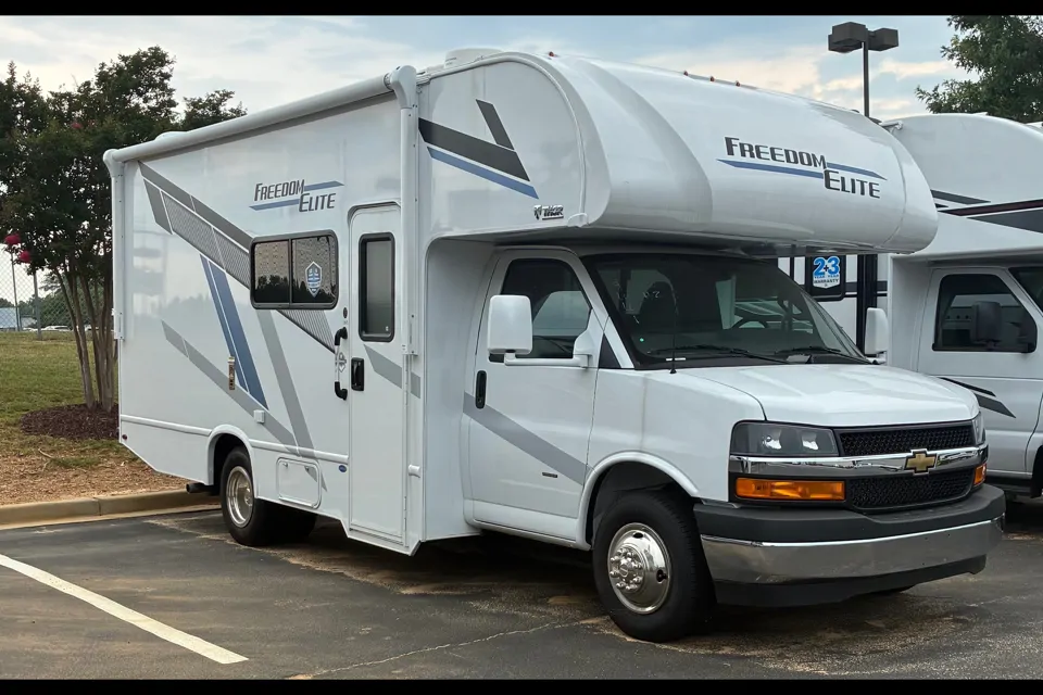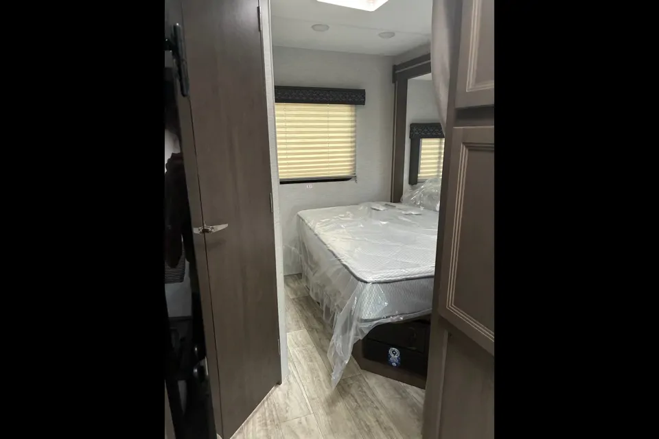 Brand new 2025 class C RV. Has a comfy queen size bed in the back. The dinette folds down for a bed that can fit 2 people and above the driver and passenger seat is perfect for 1 adult or 2 kids! Can sleep 6! Depending on your comfort level it is great for parties of 4 and doable for parties of 6! Has AC and heat with an onboard generator. Has an indoor toilet and shower. A little kitchen equipped with a sink, two stovetop burners, and a fridge/freezer! Perfect for a little getaway!