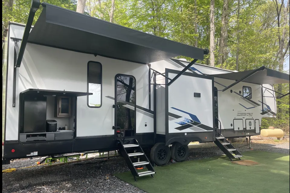Whether you have a gaggle of kids like us or just want to spread out and be comfortable on your next camping adventure, this Arctic Wolf 5th Wheel is comfortable any season of the year. With delivery and set up, take the stress out of moving this mega memory making machine!