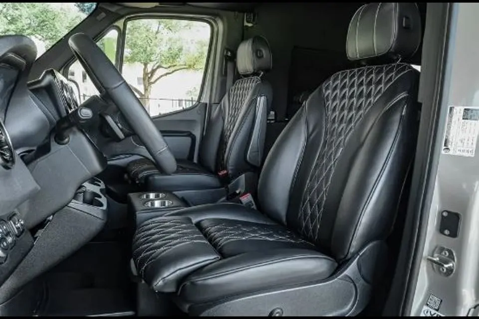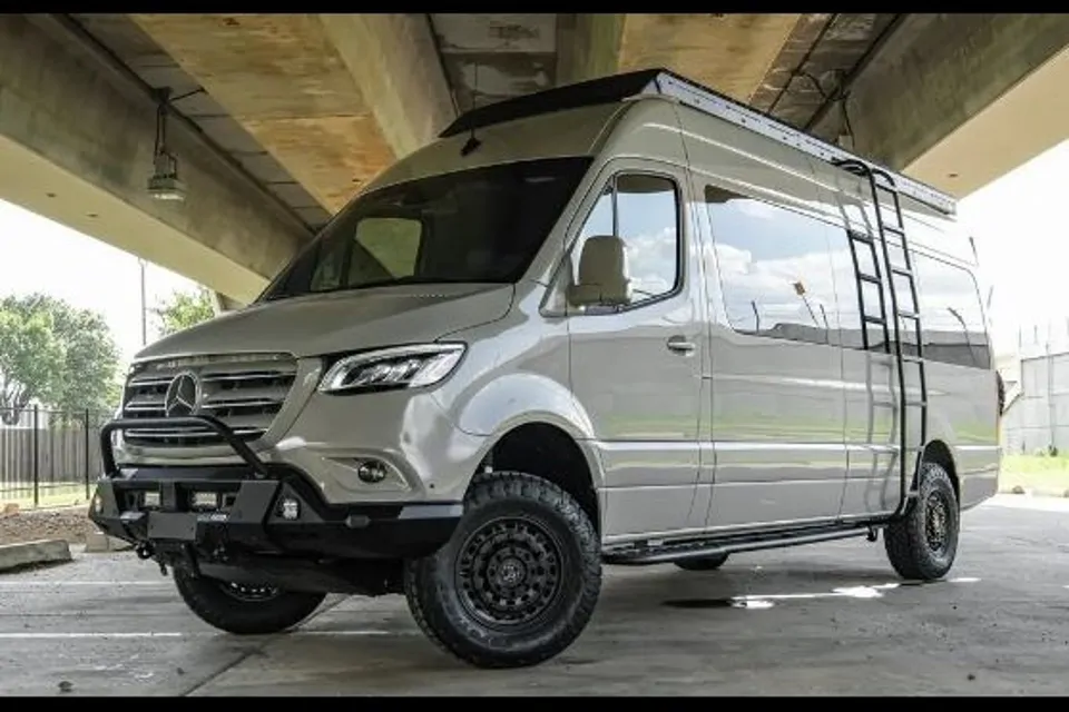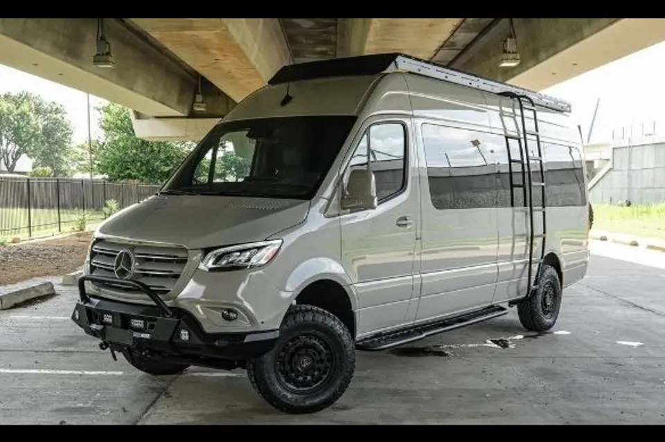 Off Road Bumper Replacement with LED Ladder Rack Black Rhino Arsenal Wheels with K03 Tires Roof Rack Privacy Shades 32" in Smart Fire TV 50" in Smart Fire TV Alpine Surround Sound Maybach Lighting Dark Ash Wood Plank Vinyl Flooring Maybach Lighting 4 Captains that Swivel with American Made Diamond Stitched Leather 2 Jack Knife Couches with American Made Diamond Stitched Leather Door that Leads to back storage area that can hold a cooler for drinks Rear Partition with Split Shelf Storage 2 Front Captains with American Made Diamond Stitched Heated Leather Rear AC and Heat Recessed Reading Lights AWD Running Boards Holds 10 -12 Total.