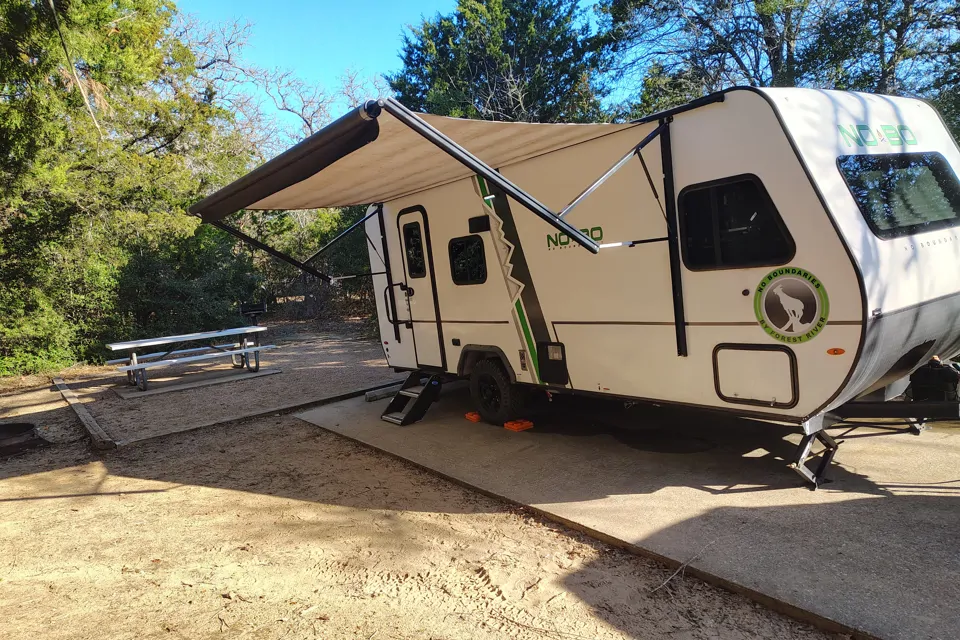 Pick up and drop off the RV yourself for free in Bastrop, Texas. Exact location shared after booking.