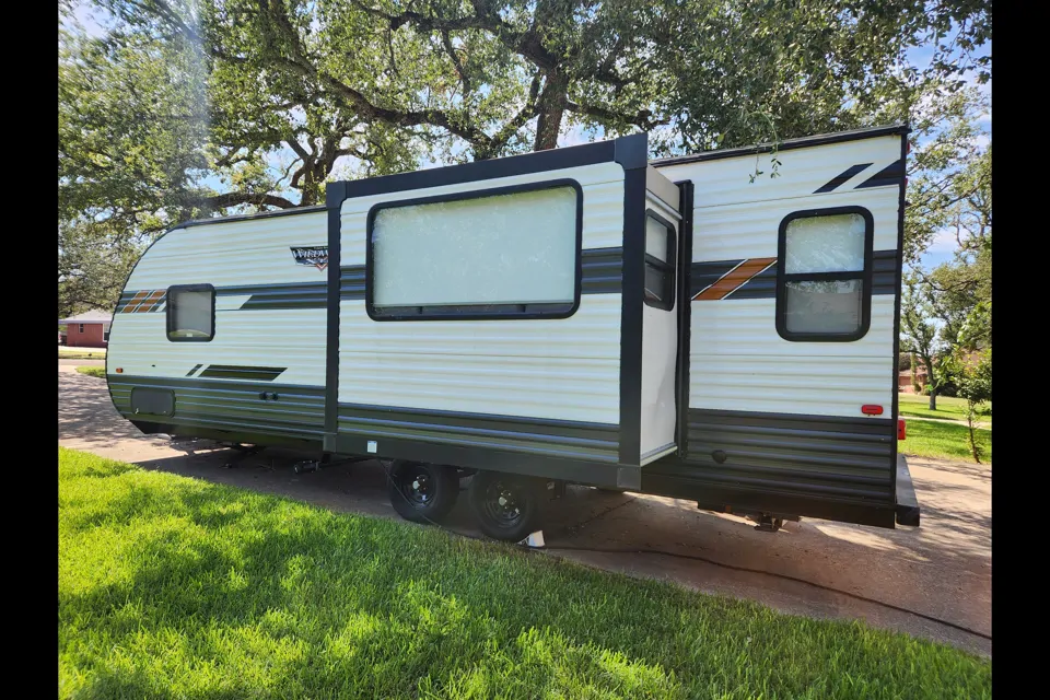 Looking for the perfect mix of adventure and comfort? Welcome to Serenity on Wheels, our 28ft 5th wheel RV designed to make your getaway as relaxing as it is memorable.