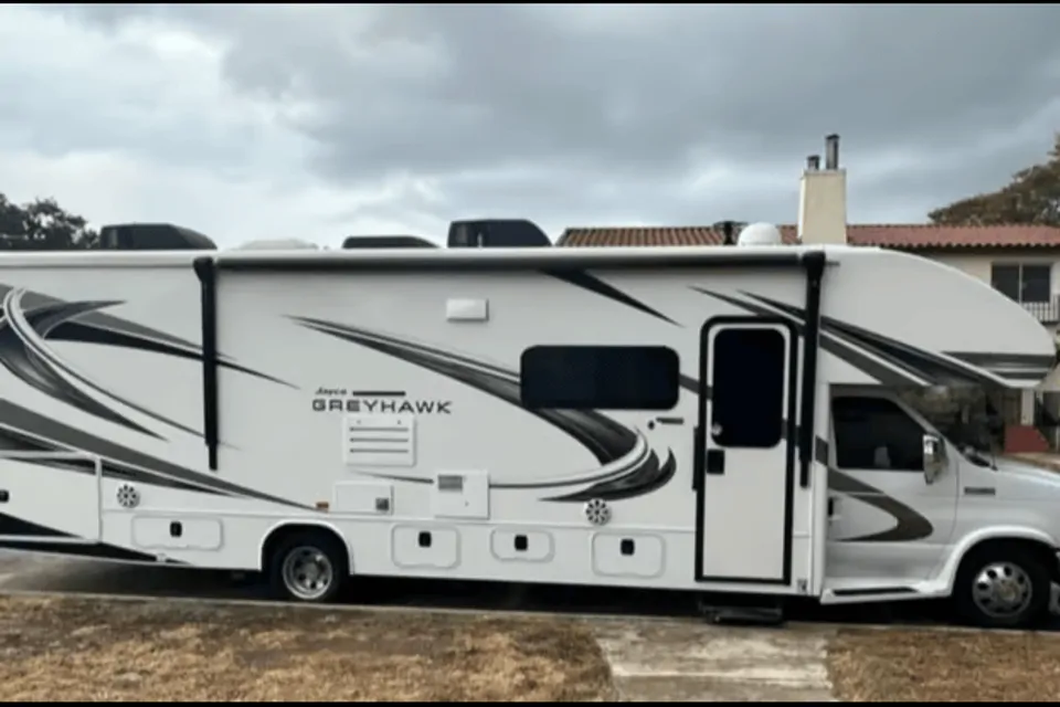 Hit the road in the Alamo-mobile! Our 2021 Jayco Greyhawk Class C motorhome sleeps 7 and comes fully equipped with kitchen, bath, A/C, and entertainment. Pet-friendly and road-ready, it’s perfect for family trips, weekend escapes, or cross-country adventures. Explore the Texas Hill Country, riverside campgrounds, or beyond in comfort — the Alamo-mobile delivers your home-on-wheels experience!