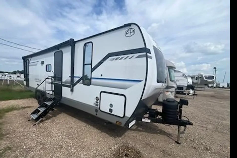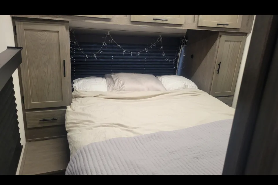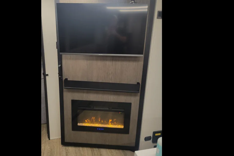 RV includes beautiful fireplace, 2 A/C units, Keurig coffee maker, duvet linens and pillows and 2 smart tvs. It's the perfect size for a family and includes board games, bottled water, k cups, full oven/stove/ microwave and airfryer.