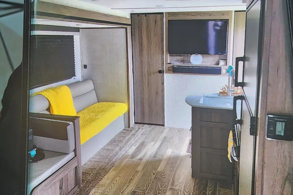 Welcome Home The 2022 King Sport is fully stocked and ready to go. We offer clean and comfortable delivery & set up /pick up delivery time at 3 pm if you need an earlier delivery please let me know. pickup time at 11 am. We will have everything you will need and more Master bedroom has a queen bed with a pillow-top mattress for a better night's sleep. Clean Comfort mattress protected with an anti-microbial waterproof mattress Zippered mattress protector 3pillows with Heiq-v-block anti-microbial plastic protection & bedding, 2 private bedroom doors, 2-42 inches Smart TV with 2 remotes, 1 slide-out for more space, 2 bunkbeds with bedding sleeps 2, private restroom with sink, toilet, shower, mini tub, towels & Rv tissue Provided, dining table turns into bed sleep 1, large windows to see the view, blackout shades. outdoor chairs outdoor rugs unwind & relax, we have everything you need and more.