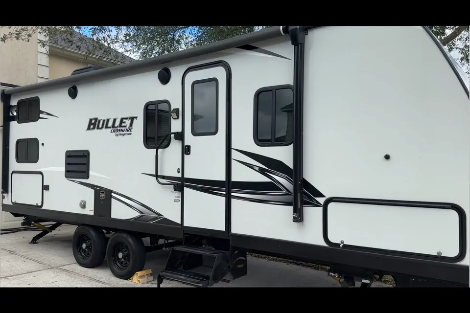Beautiful clean bunkhouse plan with outdoor kitchen. Sleeps 8. With a slide out, it feels huge inside! Perfect for families to go camping, or tailgate for the weekend! Inside and outside refrigerators. Also comes with a 6 foot folding table and camp chairs. Fully stocked with plates, pans, utensils, cups, sheets and towels. It's ready to go when you are!
