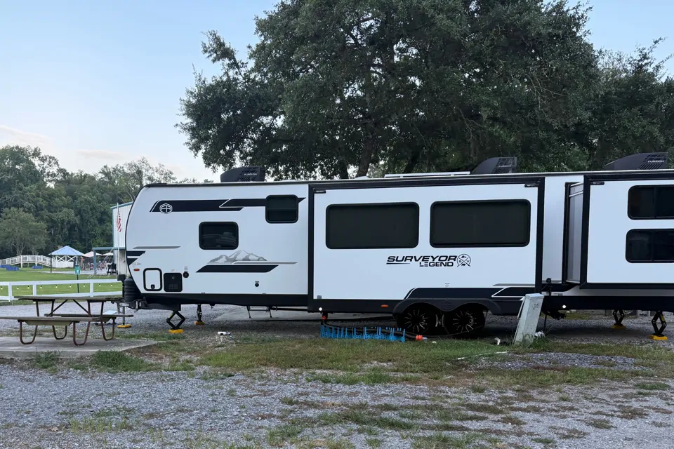 Fully Stocked - linens, dishes, cookware, toiletries, and outdoor games to use while camping. We offer RV Rental Delivery to make your vacation start out smooth. This large 2 bedroom, 1.5 bath RV has all the comforts of home while being able to go out on an adventure. Bring your furry companions in this Pet Friendly RV. Our Home on wheels has everything you need to make glamping life easier. The master bedroom has an aftermarket Serta mattress for a more enjoyable nights rest.