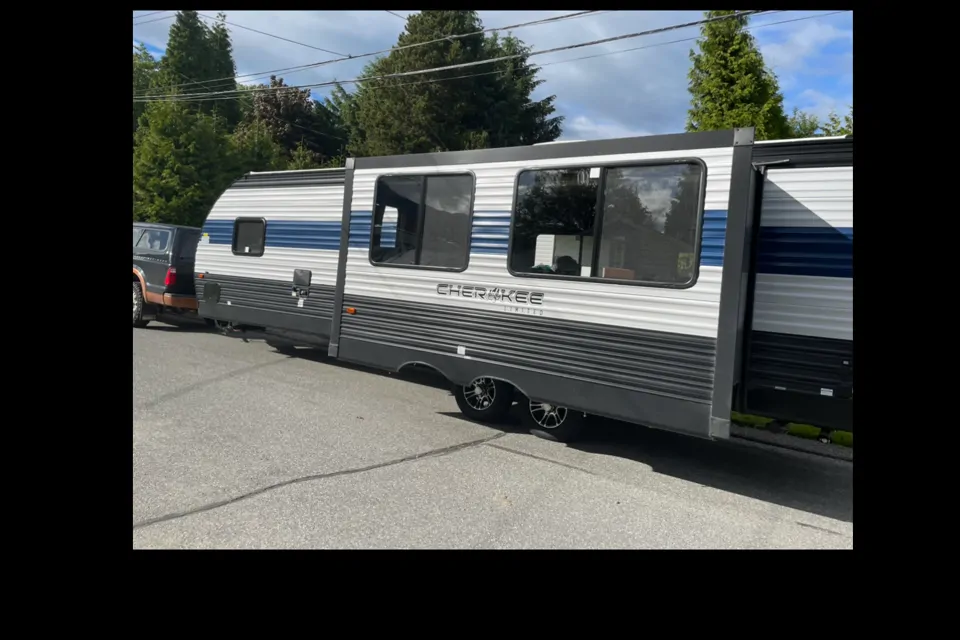 Beautiful trailer , spacious , . We can tow it to the site and pick it up for a fee . Air conditioning works great ! Tv which can be put outside on the trailer as well. Very spacious with storage room , beautiful stove and large refrigerator with a freezer . She has an outdoor fridge and table top range , ice maker as well . Light 6000lbs