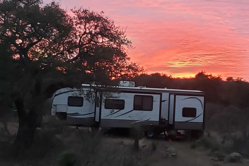 Close to Enchanted Rock 18 Miles, 5 Miles to Llano, 30 miles to Fredericksburg and 25 Miles to Horseshoe Bay. A comfortable "home base" 2015 Keystone 36 ft Hideaway with two pop outs surrounded by 28 beautiful acres of rural land and granite outcroppings. Walk trails or hike up the rocks to views of Llano and the surrounding hill tops. At night sit by the campfire, watching the sunset and the deer feeding off in the distance. Perfect for 2 people, or 2 couples. Can sleep up to 8 people.
