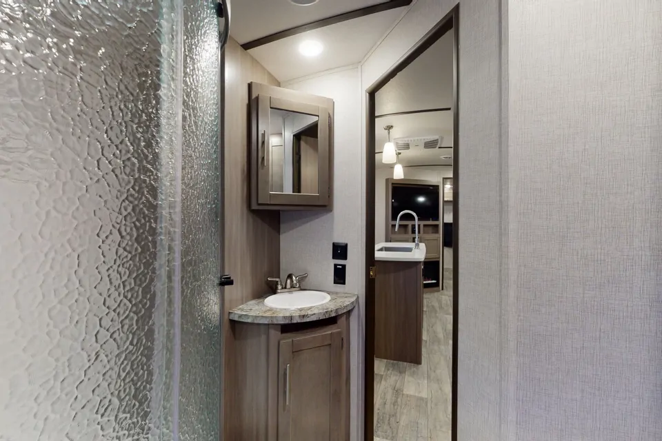 The Sunset Trail is a one stop shop for all your camping (or glamping) needs. Enjoy all of the entertainment of the outdoors, or watch a movie inside by the fire place. This camper has a large king size master suit and a separate bedroom with a half bath for kids or guests. It also has a pull out couch for additional sleeping space! We recommend 6 people for comfort, but this camper can easily sleep 8+. We will provide all of your needs to make traveling easy and fun!