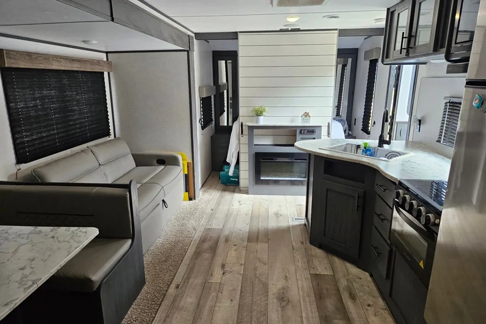 Designed for a simple, stress-free stay—just bring food, clothes, and personal items. Fully stocked with bedding, towels, toiletries, kitchen essentials, pour-over coffee maker, and two outdoor chairs. Clean, sanitized, well-maintained. This family-friendly camper is ready for your next getaway.