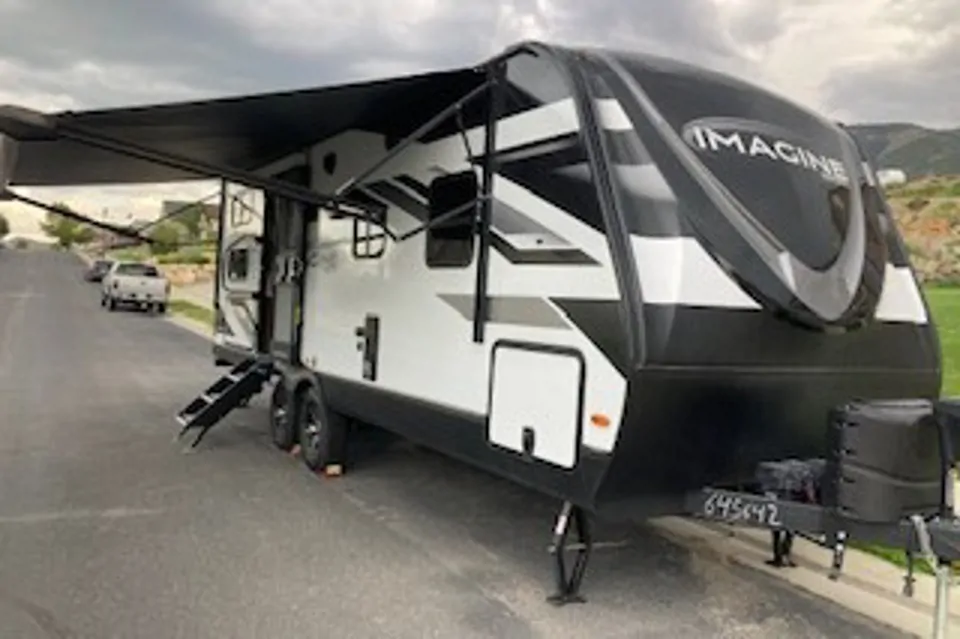 2023 Imagine by Grand Design is your Home away from Home! Come & enjoy this trailer with all that it has to offer. Lofty ceilings w/6.75ft clearance. Great for the tall person in your family! Sleeps 8 w/beautiful private sleeping area, its own privacy door & featuring a queen-sized bed. Plenty of closet space & two wardrobe cubbies on each side w/110 outlet & USB charging. Two oversized bunks, holding up to 250lbs ea. w/privacy curtains, lights & USB ports. A beautiful kitchen w/range/oven, microwave, large kitchen sink, plenty of counter space, 12V 10 cu. ft. double door refrigerator/freezer, plenty of cupboard space, comfortable dining, featuring removable U-shaped dinette table & removeable ottoman. Making it a wonderful place to sit & build those family memories, whether you are eating, playing games, or just watching a movie. This dining area also folds down for add. sleeping. The kitchen is fully furnished w/dishes, utensils, pans & dish towels. A spacious bathroom w/plenty of counter space & storage for those beautiful women in your family. The bathroom has towels, & a silicone heat pad for your curling iron.
