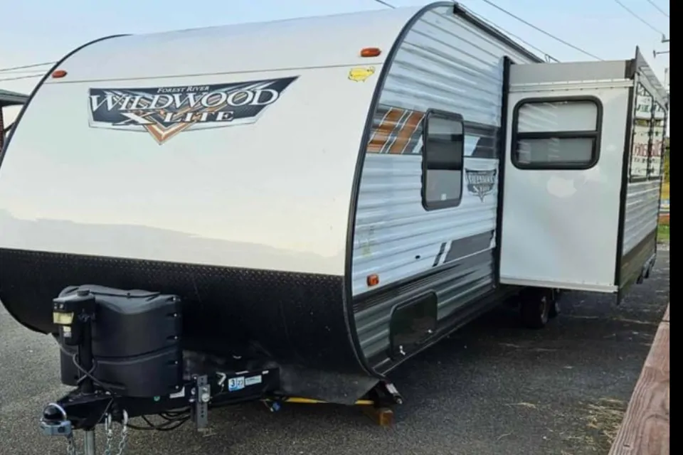 This 33 foot camper can sleep 8-10 people! It features 1 queen bed in its own private room, as well as another bedroom with two bunks and a fold down queen bed. The couch and dinette within the living area can be used for sleeping areas as well. The kitchen area has a large refrigerator/freezer, gas cook top, gas oven, and microwave. The bathroom features a stand up shower. Linens and towels are included. This camper also features a small outdoor kitchen with a small refrigerator and griddle. This camper can be towed by you/your party, however appropriate experience and vehicle is required. We can deliver and setup for you as well! Minimum 3 night stay.