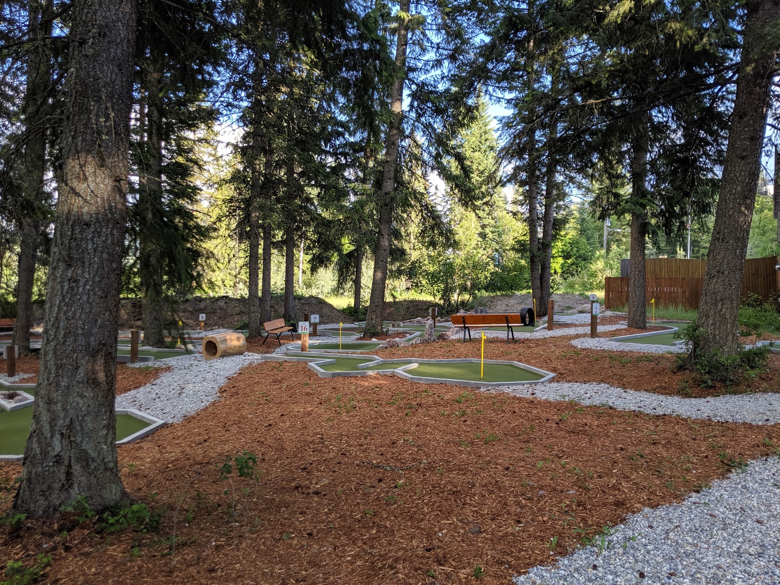 Beyond golf, guests enjoy a grass-teed driving range, putting green, mini-golf, and professional lessons. An on-site restaurant provides dining options for visitors. The location near Golden offers access to outdoor recreation and natural attractions of the Canadian Rockies region. The park earned recognition as "BC's #1 Hidden Gem" in 2012 and 2014, reflecting its unique appeal as both a recreational retreat and RV destination in one of western Canada's most picturesque areas.