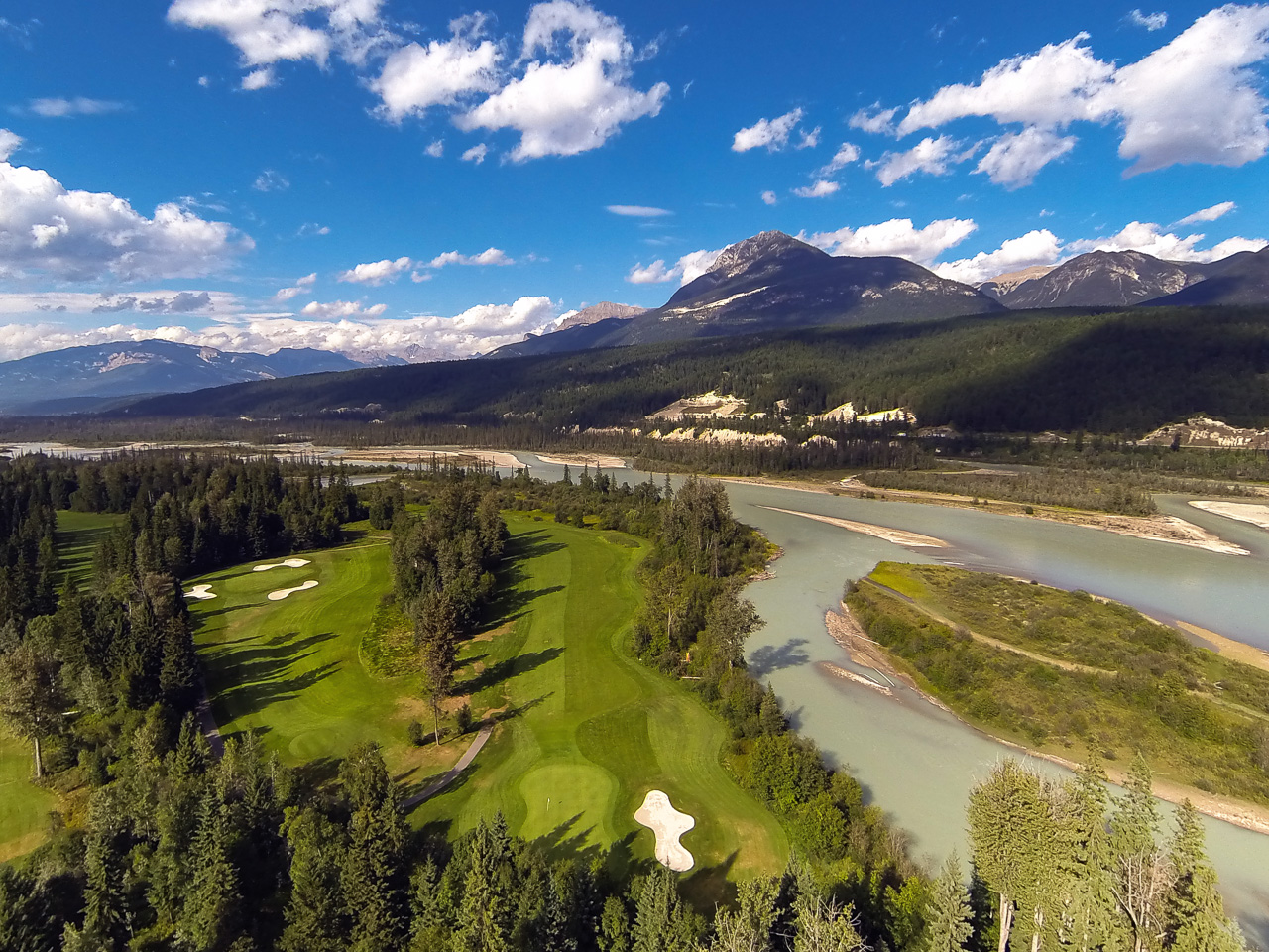 The RV park caters to both motorized and tent camping enthusiasts with comprehensive amenities including 30-amp electrical hookups, water connections, and dedicated tent sites with tables. Pet-friendly policies make it an ideal choice for families traveling with companions. The property's crown jewel is its 18-hole golf course, consistently recognized as one of BC's most scenic courses, featuring dramatic Rocky Mountain views and the meandering Columbia River bordering the fairways.