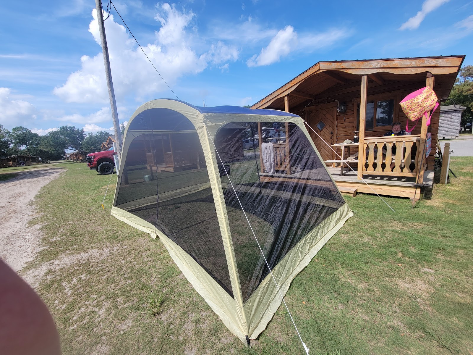 The campground welcomes all camping styles—RV sites with 30-amp and 50-amp electrical hookups, tent sites, and cabin accommodations—with full sewer connections, propane service, and pet-friendly options. Beyond standard amenities including laundry facilities, a dump station, and full shower houses, Frisco Woods provides a refreshing pool, kayak and paddleboard rentals, and an on-site camp store.