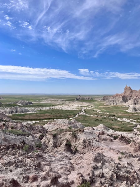 Deer Haven offers a rare backcountry camping experience deep within Badlands National Park in Wall, South Dakota. Reached via a 2.5-mile unmarked trail from the Conata Picnic Area, this primitive site lets campers choose between open prairie, dramatic butte summits, or sheltered juniper groves—all surrounded by the park's iconic spires, pinnacles, and ravines. On clear days, views can stretch more than fifty miles across the stark, otherworldly terrain of the South Dakota Badlands. No camping permits are required; visitors simply register at the trailhead before heading out. The area is leave-no-trace: campfires are prohibited (backpacking stoves only), all waste must be packed out, and pets are not allowed in backcountry zones. Water is not available on-site, so campers should carry a minimum of one gallon per person per day. Topographic maps and sturdy ankle-support boots are strongly recommended. Situated near the town of Wall—home to the famous Wall Drug—Deer Haven is an ideal base for those seeking solitude, dramatic landscapes, and an authentic wilderness escape in one of America's most striking national parks.