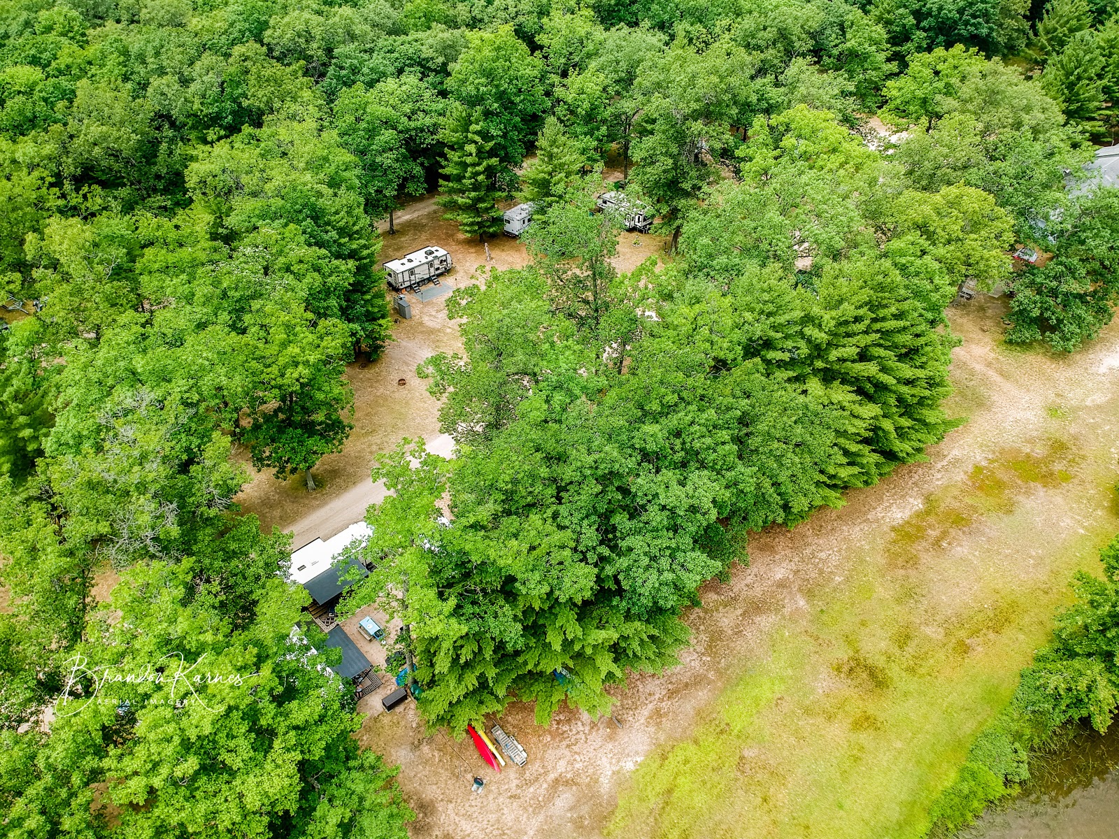 Pickerel Lakeside Campground and Cottages is a scenic lakefront destination located in Bitely, Michigan, approximately 9 miles south of Baldwin on M-37. Situated on the shores of Pickerel Lake, this wooded property offers 27 lakefront RV sites, 15 pull-through lake view spots, and modern cottages, catering to both RV travelers and those seeking cabin accommodations.