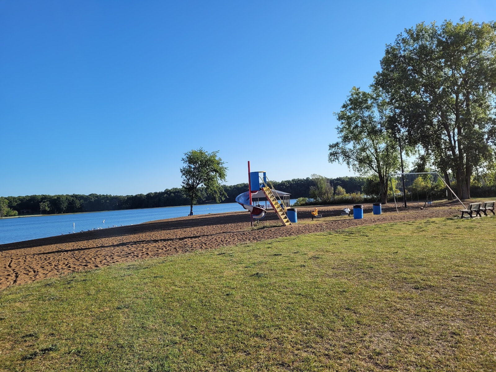 Greenwood Acres Family Campground spans 300 scenic acres in Jackson, Michigan, offering one of the region's largest family-friendly RV camping experiences. Situated along a full mile of beautiful Goose Lake shoreline, the campground provides over 1,100 campsites with comprehensive hookups including water, sewer, and 30/50-amp electrical service, with pull-thru sites ideal for big rigs. Every site features picnic tables and fire pits, with amenities including a dump station, laundry facilities, and reliable internet access.