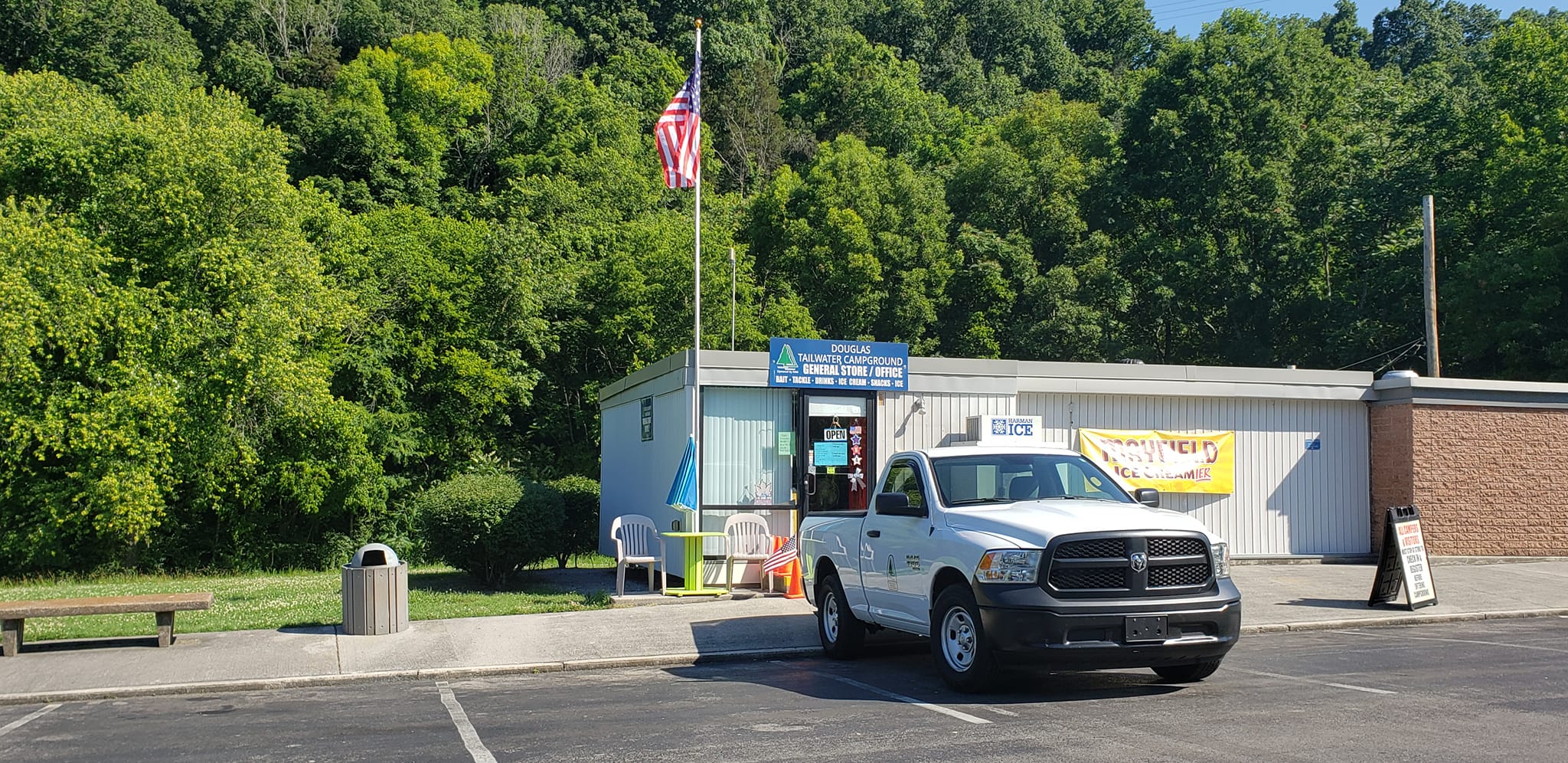 The campground features essential facilities including clean restrooms and hot showers, ensuring comfortable stays for all guests. Tent camping sites are available for those who prefer traditional camping experiences. An on-site general store provides convenient access to supplies and necessities throughout your stay.