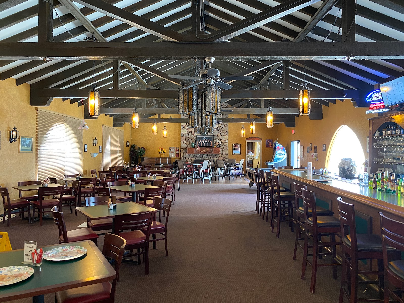 The resort offers both RV and tent camping, with the modern RV park featuring 29 spaces (expanding to 58), each equipped with full hookups including water, sewer, electrical, 30-amp, and 50-amp service. Pull-thru sites accommodate big rigs, and the park welcomes pets. Beyond standard camping amenities, the resort distinguishes itself with an on-site 18-hole executive golf course, full-service restaurant, and Arizona-licensed bar.