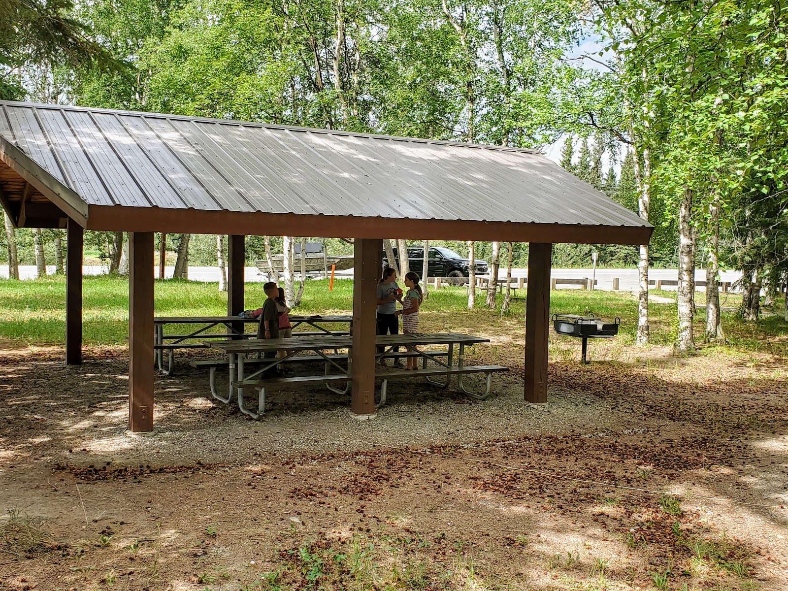 Delta State Recreation Site is a scenic campground located at Mile 267 of the Richardson Highway in Delta Junction, Alaska, offering 25 developed campsites with no RV size restrictions. Situated across from the Delta River with stunning views of the Alaska Range, the park provides a true wilderness feel while keeping travelers close to town conveniences. On clear days, visitors can take in breathtaking panoramas of Mt. Hayes (13,832 ft) and five other perpetually snow-capped peaks. The site features picnic tables, grills, firewood, water hookups, and toilets. An adjacent city airstrip even makes fly-in camping possible. Ideally positioned between Tok and Fairbanks, Delta Junction serves as a popular stopover for those exploring Interior Alaska. Nearby commercial services including shops and showers add to the site's convenience without compromising its natural setting. A 15-day maximum stay applies. Whether you're embarking on a road trip along the Richardson Highway or exploring the vast landscapes of Alaska's interior, Delta State Recreation Site offers a comfortable and memorable basecamp.