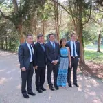 Family parked in front of a fifth wheel